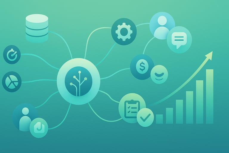 Here are 5 compelling examples from different business sectors demonstrating how your comprehensive integrated system, powered by AI automation, can transform business processes and maximize productivity: